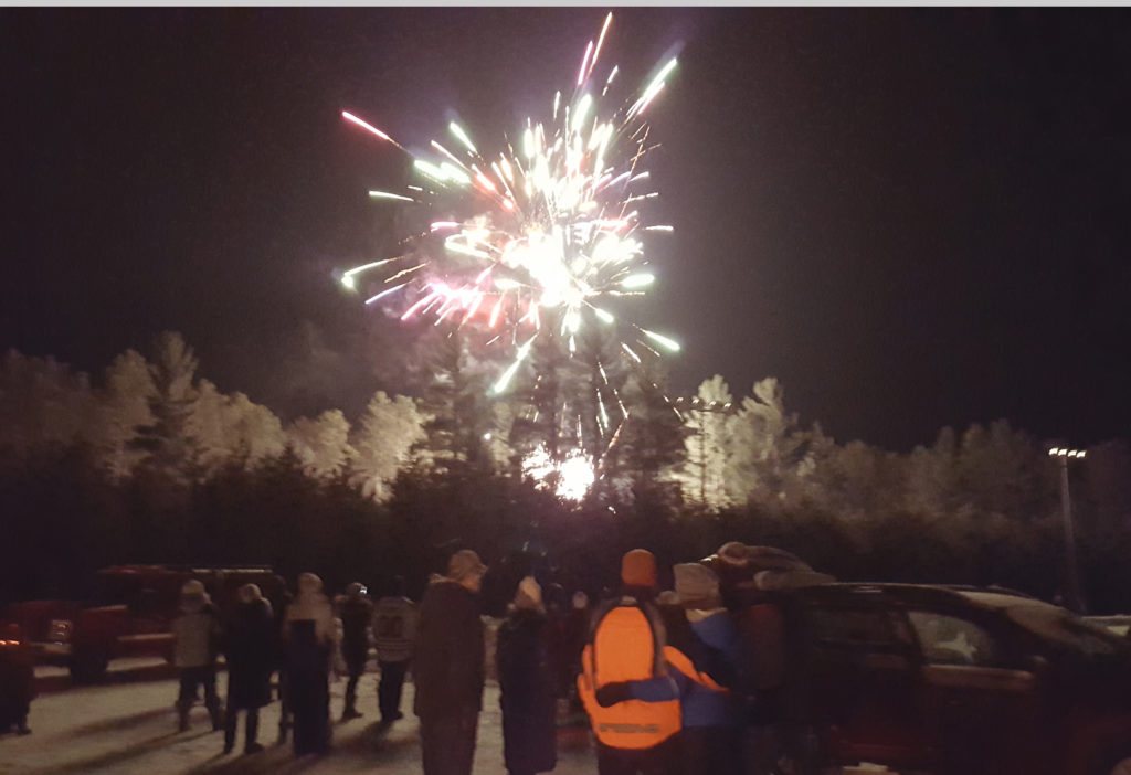 Highlights of the evening included families skating on the smooth as can be regulation sized ice skating rink, children waiting in line to be next on the adventurous sledding hill, smores being roasted over an open fire, hot coffee donated by Northern Lattes, hot dogs served by inviting Lioness volunteers behind the counter of the picnic shelter, petting soft and sweet sled dog Chewy of M.J. Sloane’s Two Moons Kennels, caroling during sleigh rides around the 1-mile snowshoe loop and finishing the evening with a bang up fireworks display.