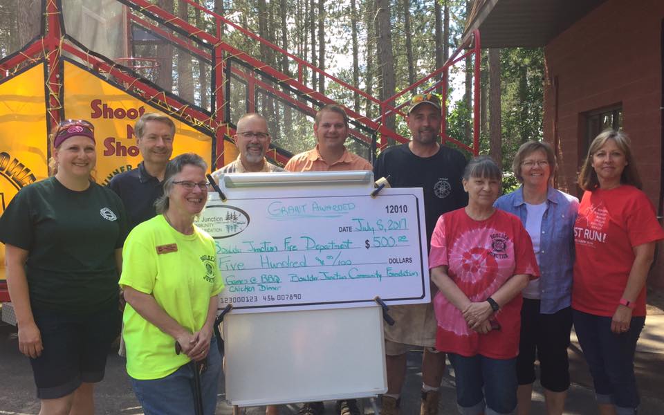 A $500 grant was awarded to the Boulder Junction Volunteer Fire Department to allow them to enhance their annual Chicken BBQ dinner with games and entertainment for the entire community to enjoy.
