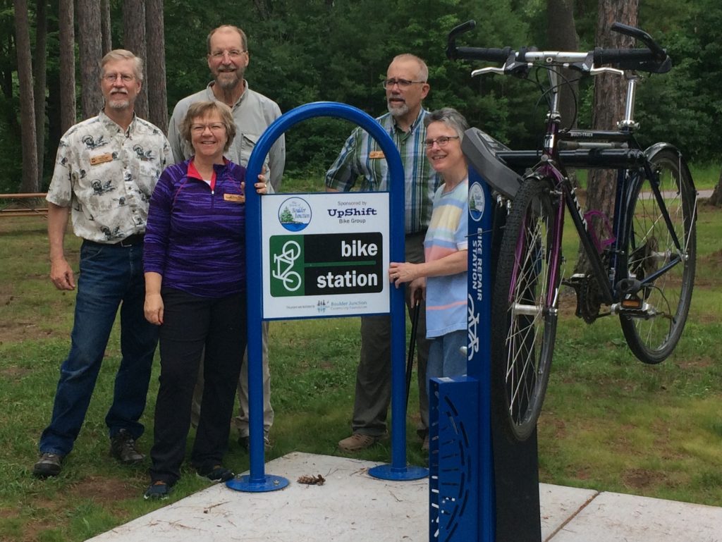 The Boulder Junction Community Foundation accepted a donation from the Boulder Junction Bike Trail Up-Shift Group which was in turn awarded as a grant to the Town of Boulder Junction in the amount of $4400.00. The grant was used to install two bike repair stations or fixtations located along the Boulder Junction legs of the over 45-mile Heart of Vilas County Paved Bike Trail System at the intersections of Hwy H/Hwy K and Hwy M/Hwy N. A fixtation is an outdoor bike stand with several bike tools and a tire pump built into it. These fixtations can accommodate two bicycles at one time.